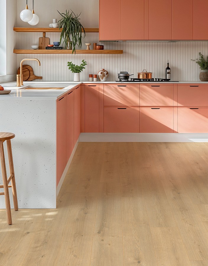 XpertPro® Best is a highly durable, hardwearing laminate flooring that is ideal for areas that are intensively used and have a high level of foot traffic. The floor planks receive antistatic treatment, so static electricity charges cannot accumulate on the surface, even in dry climate conditions. Permanently antistatic surfaces are also easier to clean, as dirt and dust adhere less to the floor. Above all, XpertPro® floors come with the Aqua Protect function, so they are completely water resistant, making them a perfect floor for every room.