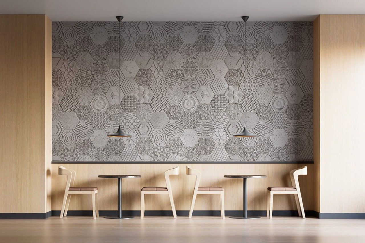 Beyond the paints for the walls and the wallpapers, decorative panels give realism to any finish and add imagination, creativity and infinite possibilities to any decorative project. You must choose the decorative style that best suits to your needs and personality. Our brand new Hexagonal concrete finish might be perfect in this adventure, since it is different but offer lots of possibilities.